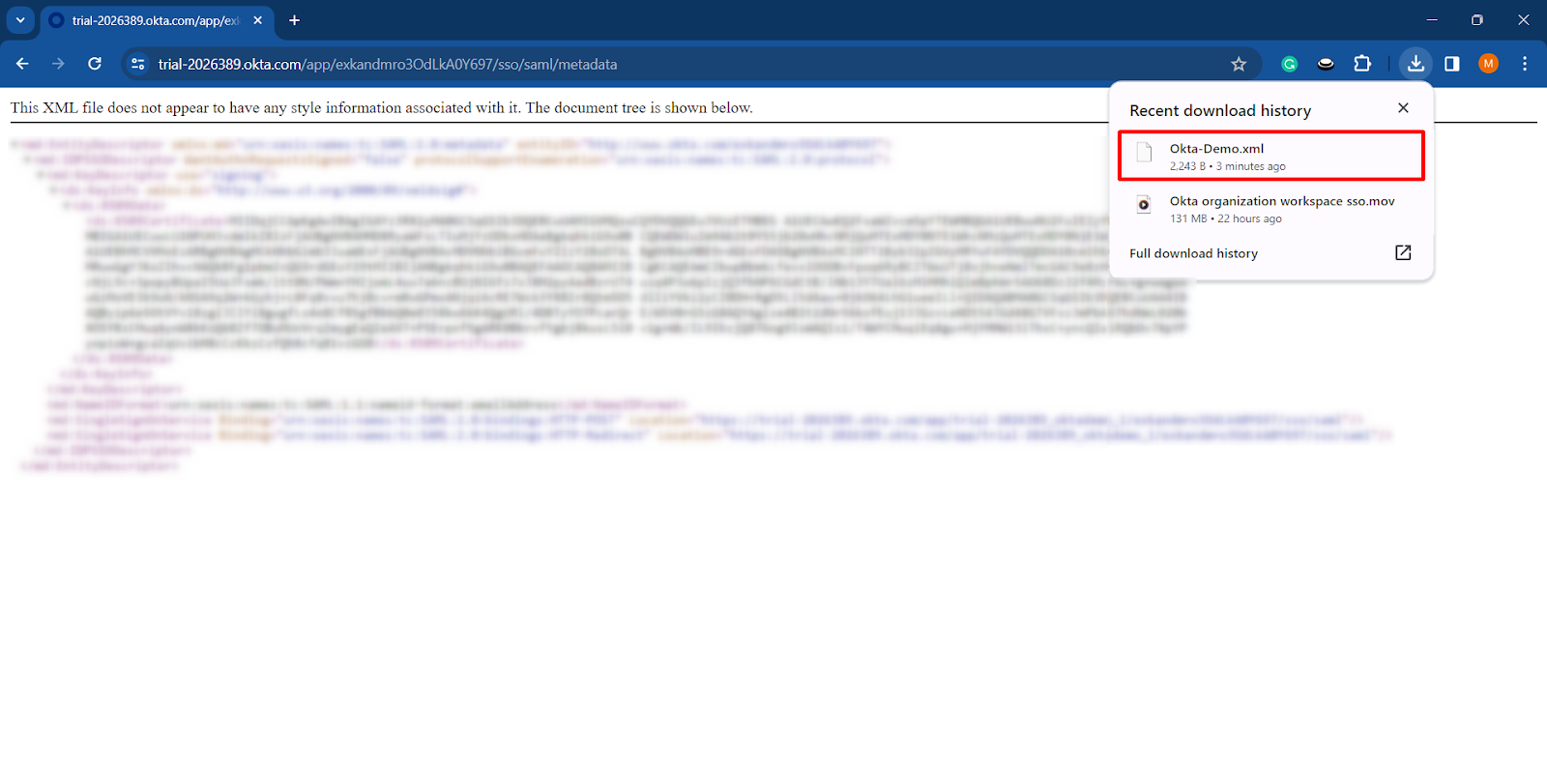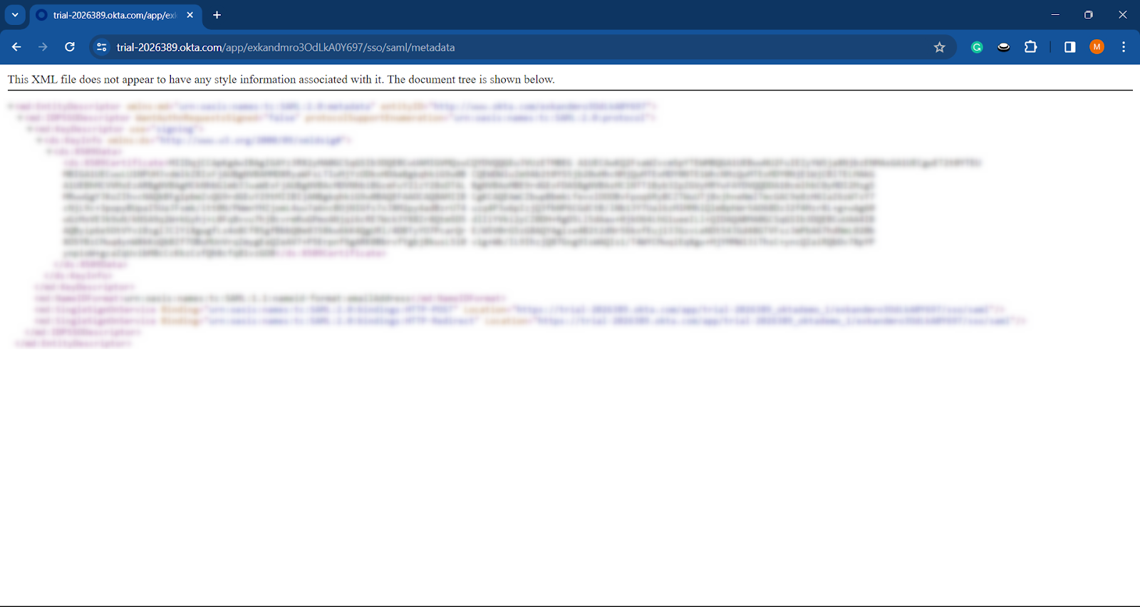 Step 2: Launch the metadata URL into a new tab.