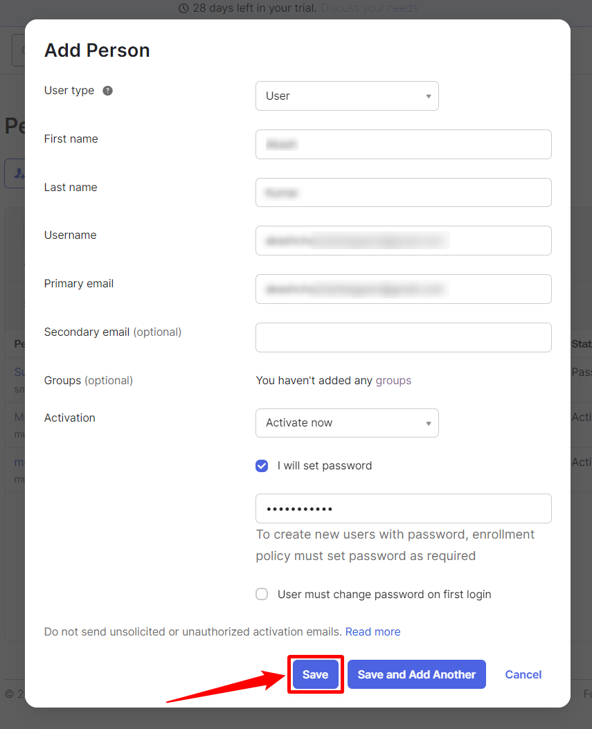 - Create a User on Okta