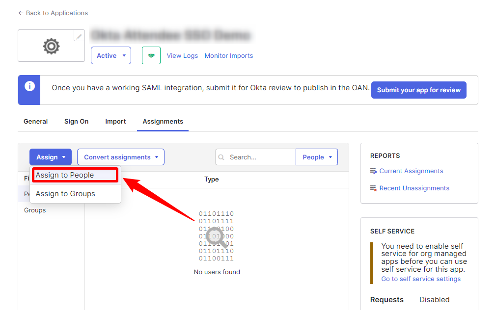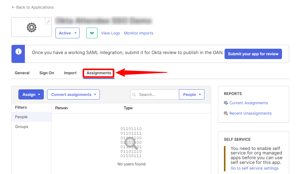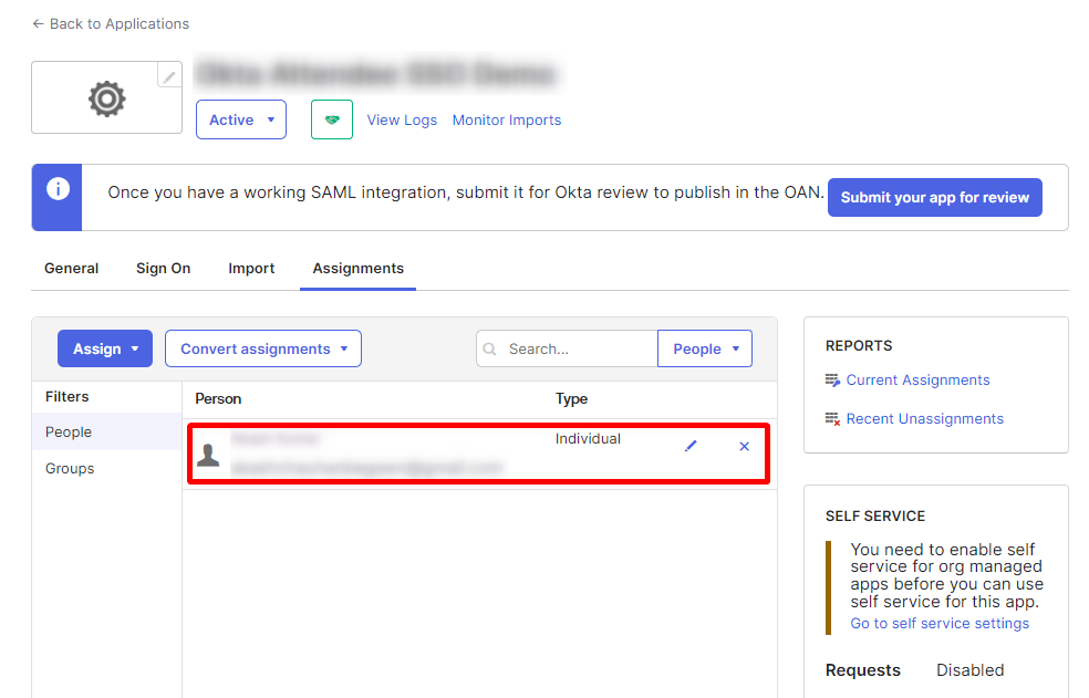 Once the Persons are all available in Okta, you may then proceed to assign them to the Application you just created.