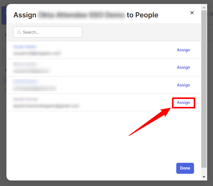 Step 3: Search for the Person you want to give Attendee SSO access to and click on the Assign button.