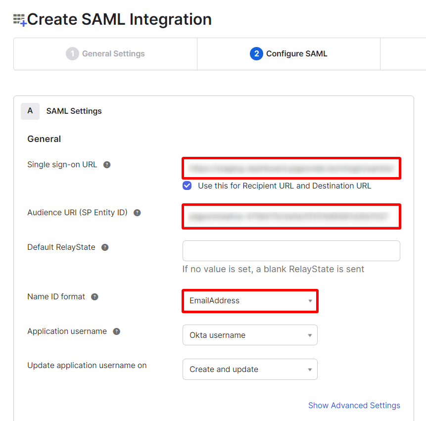 Configure the application to establish a secure and authorised communication link between Pigeonhole Live and Okta so that it sends the correct user profile attributes to the application(s).