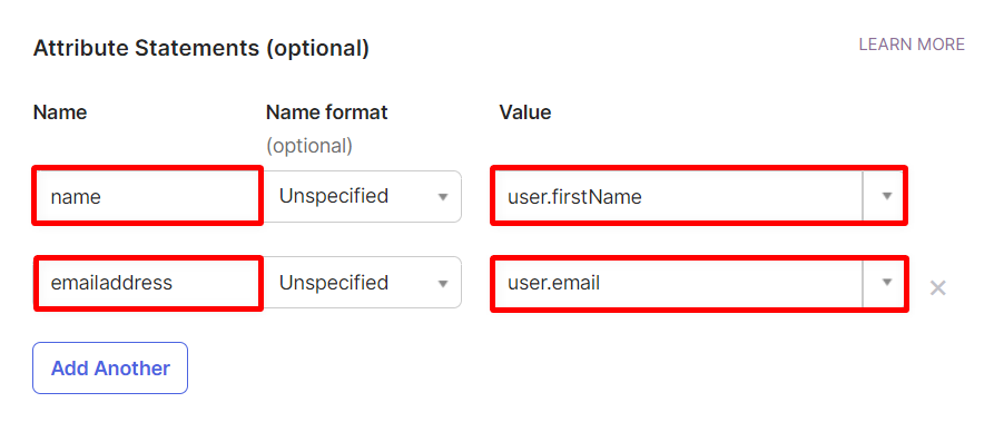 Scroll down and configure the following attribute statements (optional).