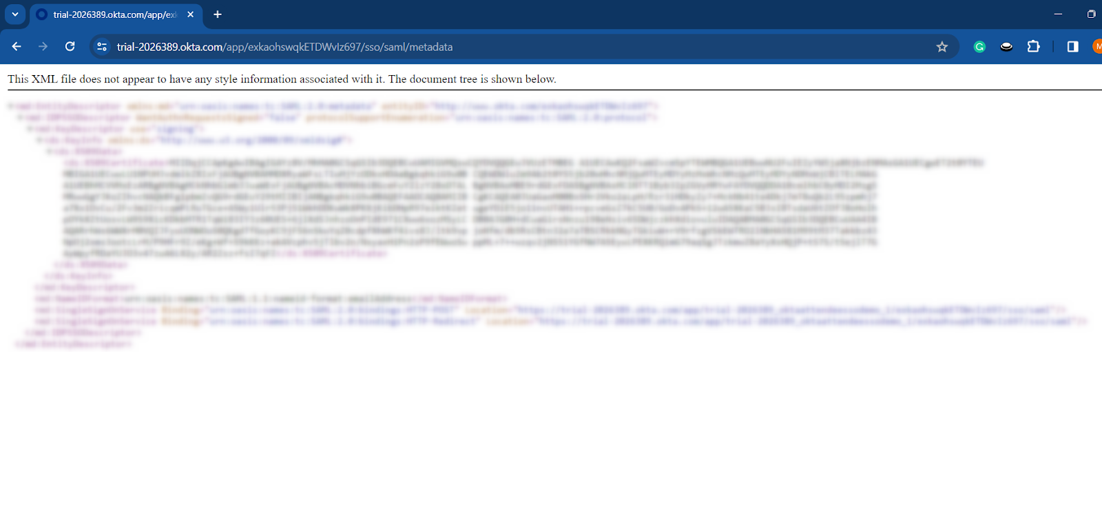 Step 2: Launch the metadata URL into a new tab.