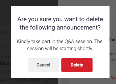 Note: For accounts with multiple users, if one user is editing an announcement and another user deletes it, the first user will be notified that the saved announcement has been deleted.
