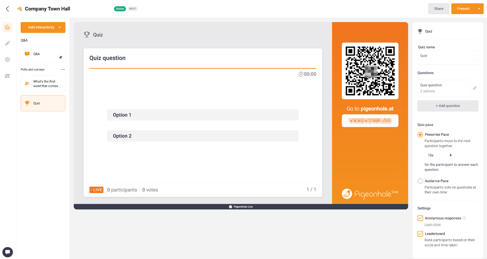 Audience Pace: Participants vote on questions at their own pace.