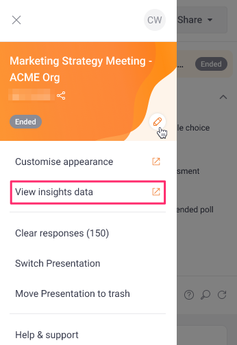 To view the insights for the Pigeonhole, select View insights data. You will be redirected to the Pigeonhole Live Dashboard to view data about your interactivities and participants.