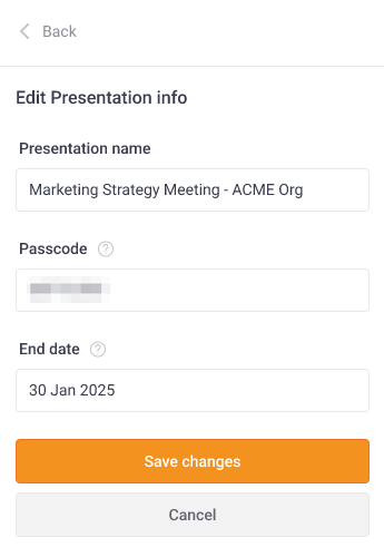 To change the Pigeonhole name, Passcode, or End date, select the pencil icon.