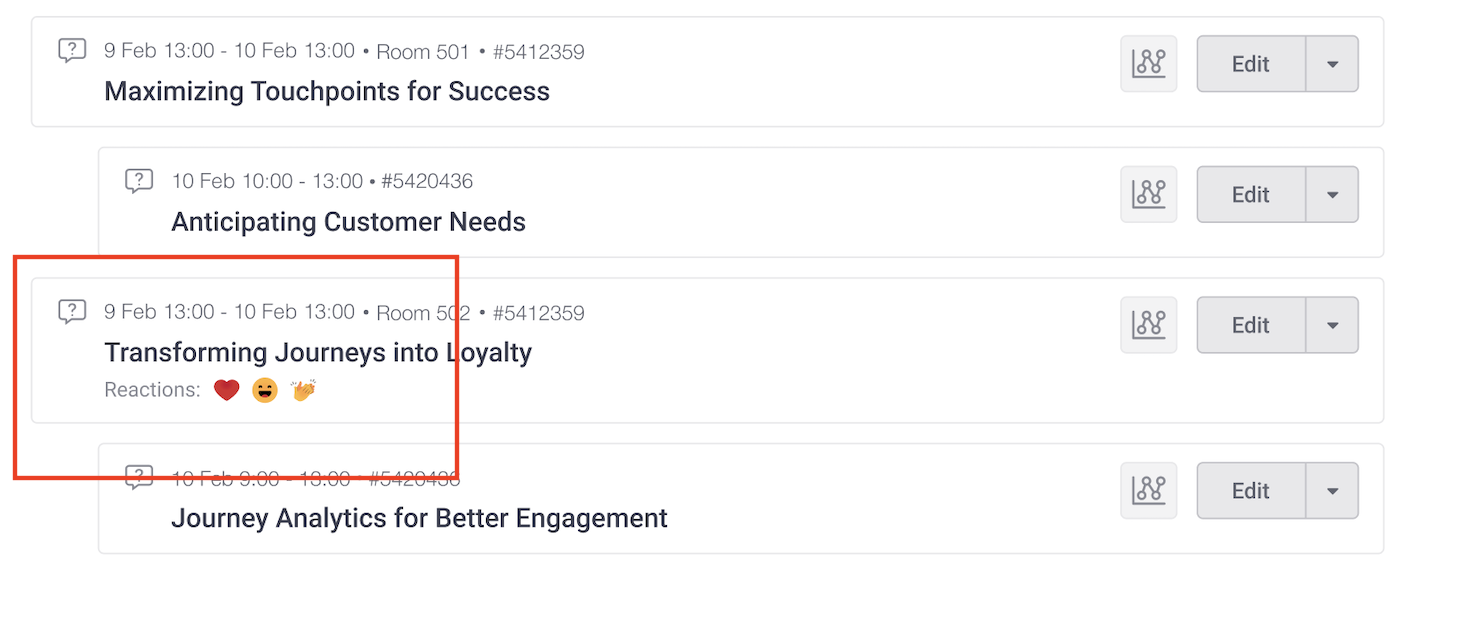 - Select a session with reactions enabled. Note that all reactions on this widget will be attributed to the parent session.