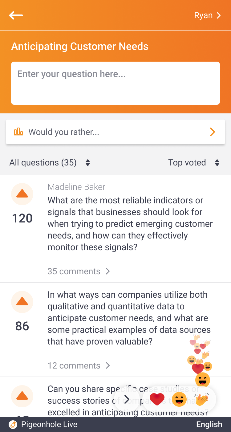 Using the Audience Web App, audiences are able to click on emojis and have their reactions instantly reflected during an event.