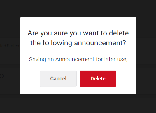 Note: For accounts with multiple users, if one user is editing an Announcement and another user deletes it, the first user will be notified that the Saved Announcement has been deleted.