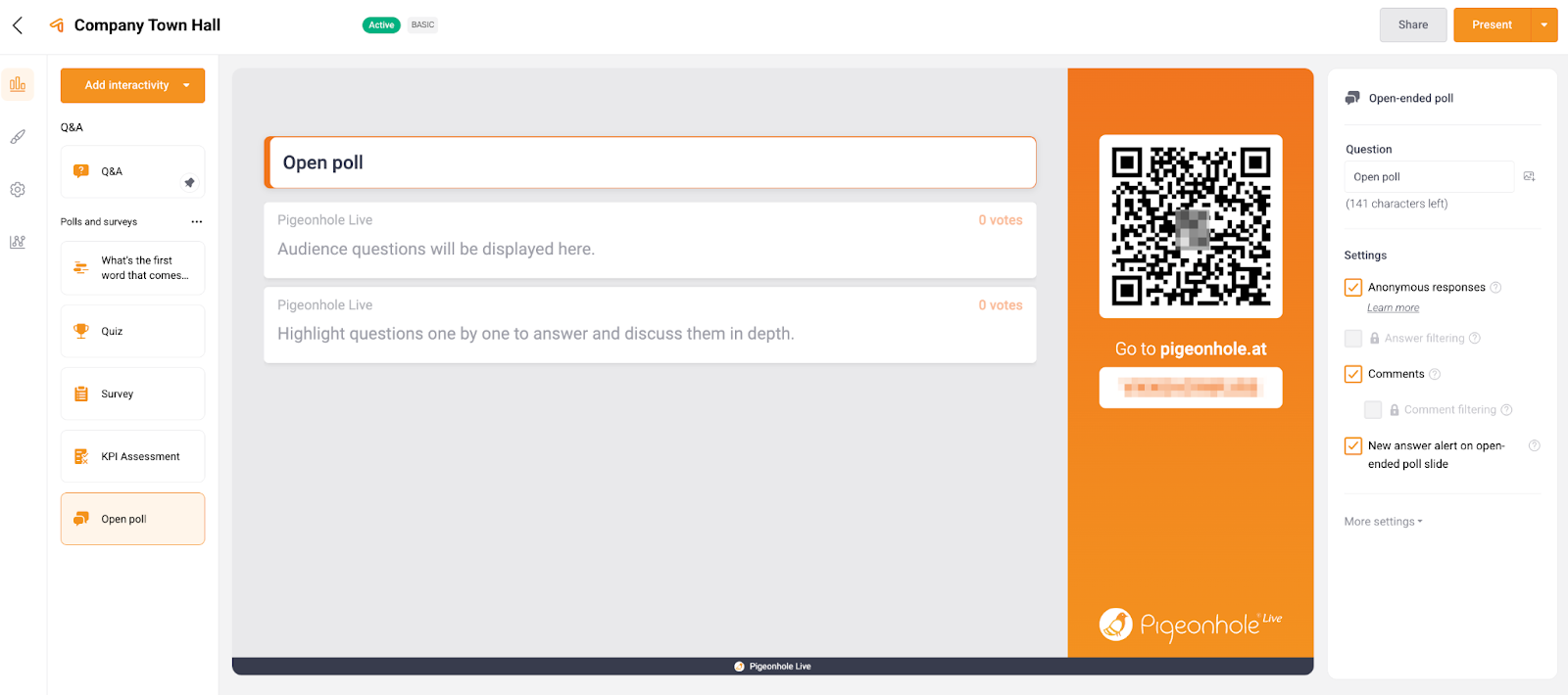 Use this guide to add an Open-ended poll to your Presentation Pigeonhole and capture qualitative insights.